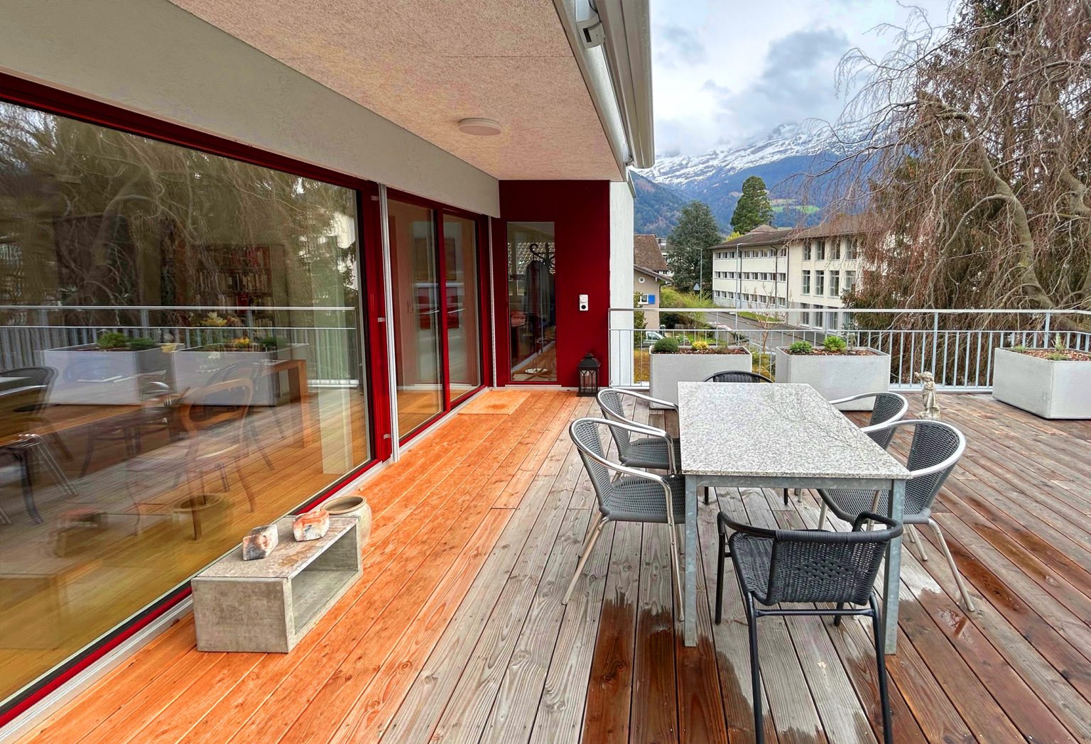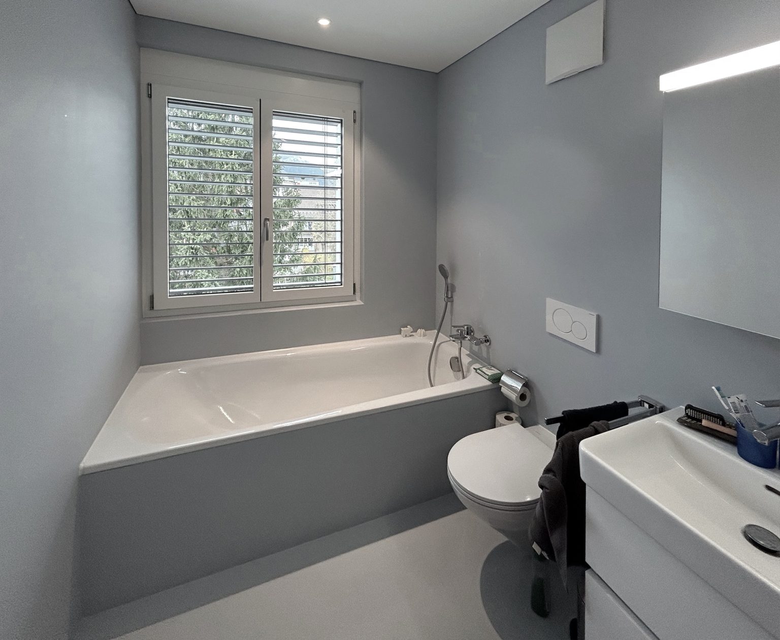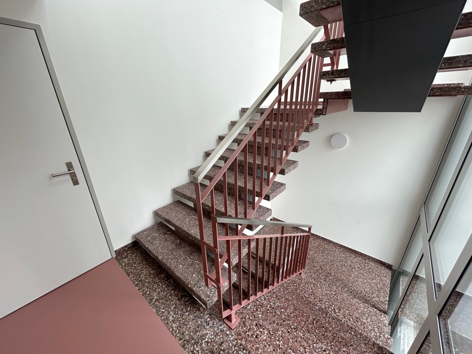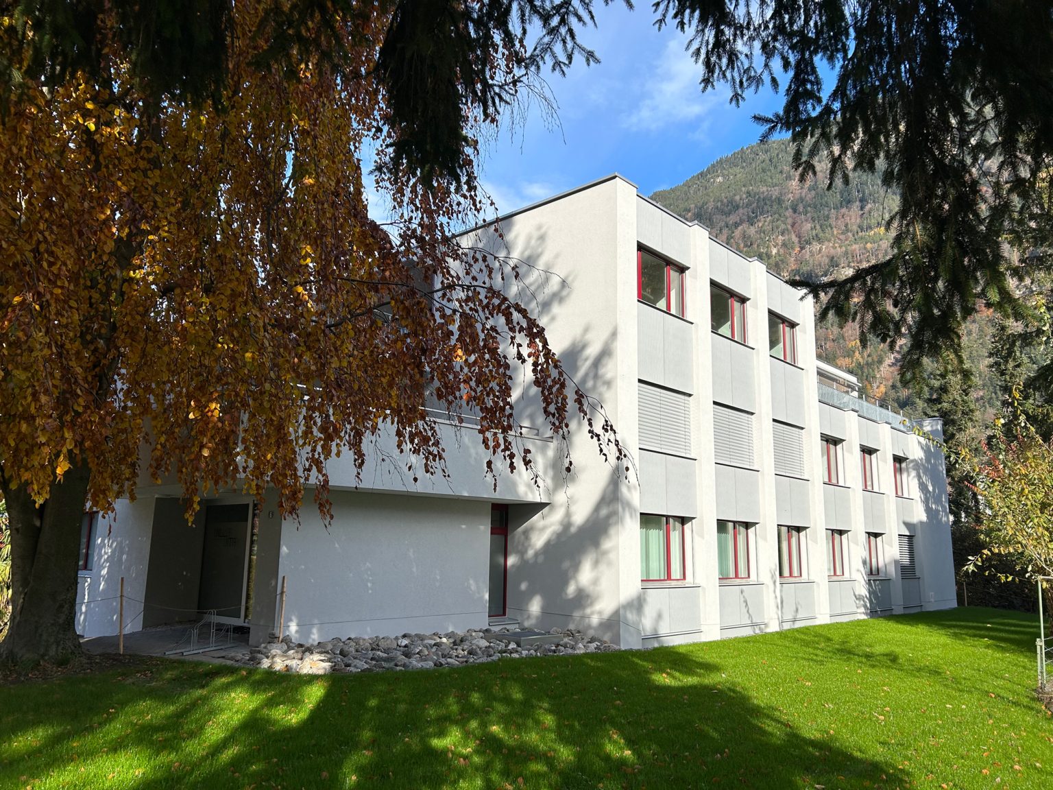 Das Haus hat eine DNA, welche sich massgeblich in der Vertikalität der Fassadenlisenen, zurückspringenden Fensterpartien und zeilenförmigen Anordnung der Raumzonen und Erschliessungen wiederspiegelt. Der Entwurf respektiert die bestehenden Fassaden- und Grundrissstrukturen aus der Bauzeit von 1974 und appliziert diese in der Aufstockung. Grossformatige und kannelurenartige Eternitplatten verstärken diese Thematik und stehen im Wechselspiel zum feinkörnigem Negativfassadenabrieb. Aus der Bauzeit vorhandene Materialien und Farben, wie beispielsweise die mit Urner Flusskies durchmischten Kunststeinbodenbeläge des Treppenhauses oder die purpurroten Fensterrähmen fanden in der Aufstockung ihre Wiederverwendung. Da die oberste Decke nur Netzarmiert und keine statischen Funktionen erfüllen konnte, erfolgte der Lastabtrag des Holzelementbaus ausschliesslich mit Vollholzböden und -decken auf die darunterliegenden Innenwände. Dank dem Einbau eines Liftkerns wurden zusätzliche, statische Verstärkungsziele erreicht. Mit der neuen, eingebauten Grundwasserwärmepumpe sowie der PV-Anlage auf dem Dach konnte der CO2-Austoss erheblich reduziert sowie dank Eigenproduktion nahezu 80% des Energiebedarfs selbst erzeugt werden – eine nachhaltige Bauweise, welche mit Fördergeldern unterstützt wurde.